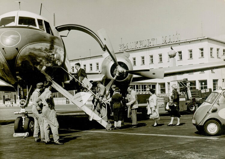 Anfang der 50er-Jahre wächst das Fluggeschäft in Frankfurt rasant. Zwischen 1950 und 1953 verdoppelt sich die Zahl der Starts und Landungen auf knapp 27.000 pro Jahr. Die Flughafengesellschaft, die 1945 noch aus vier Mann bestand, zählt im Geschäftsjahr 1953/54 364 Mitarbeiter.